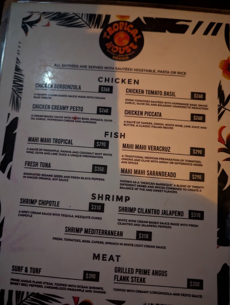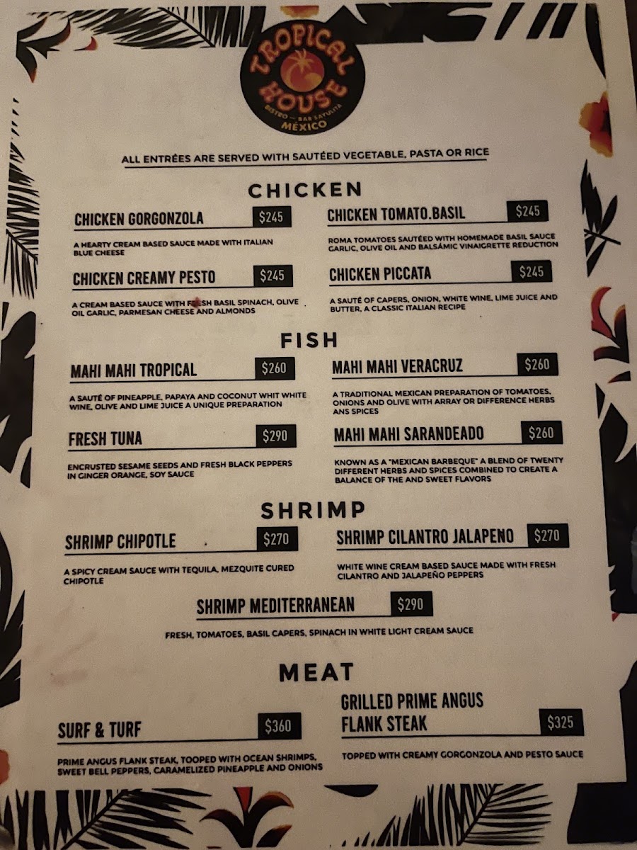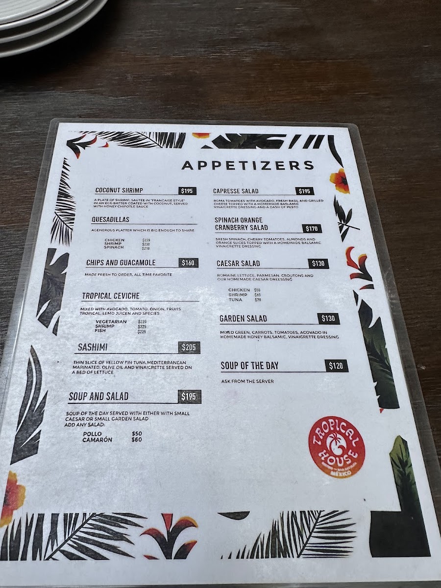 Tropical House Menu