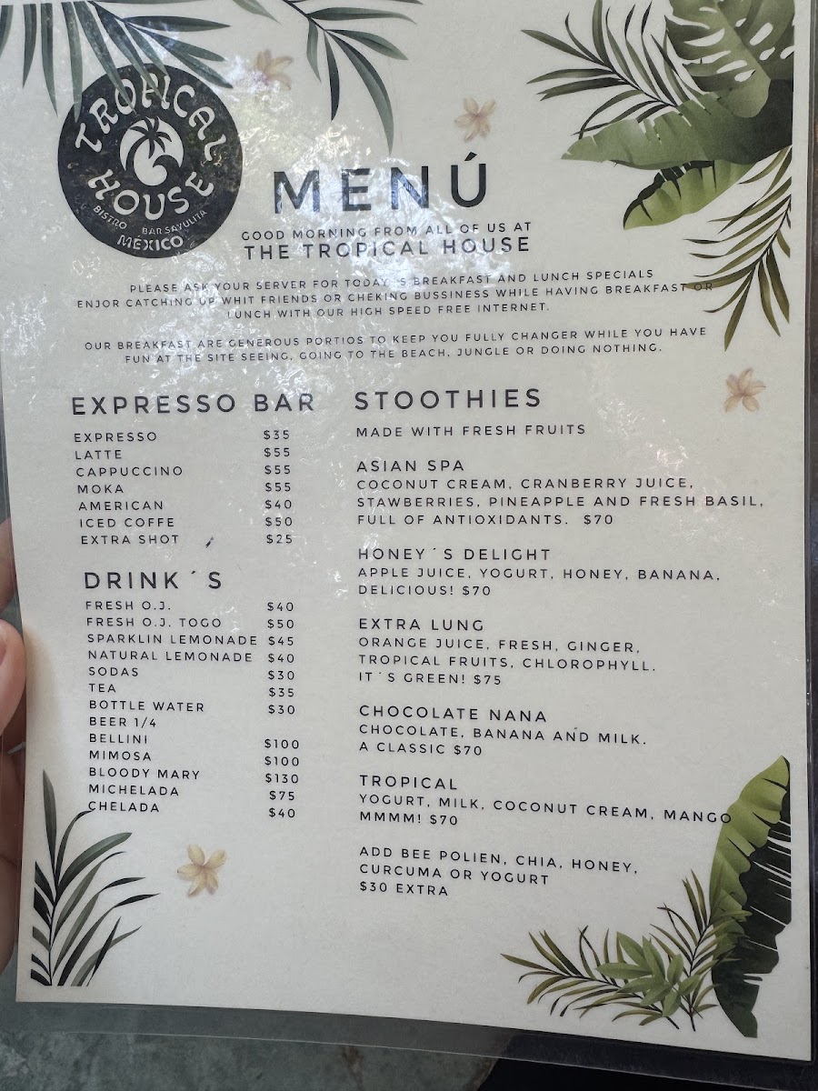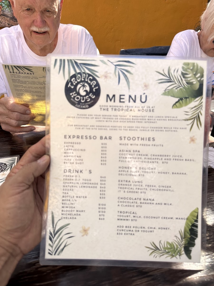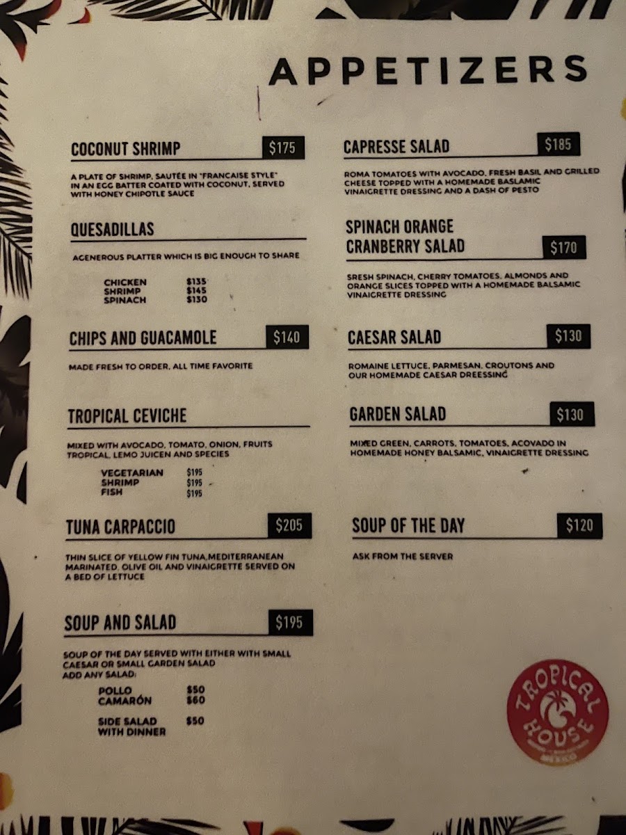 Tropical House Menu
